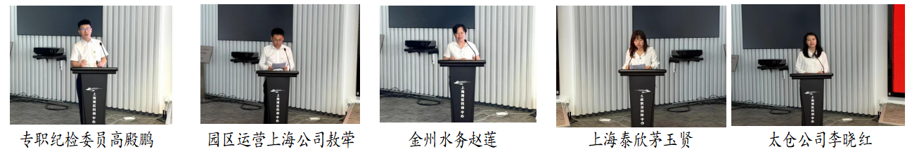 6月14日,“清風萬里行”走進上海灣區科創中心,大家濟濟一堂開展黨紀學習教育活動。集團紀檢工作部部長助理張帆以《恪守“六大紀律”,筑牢思想根基》為題,生動宣講黨的紀律處分條例,引導黨員干部職工培養紀律自覺、筑牢思想防線。集團紀檢工作部干事、紀律教育和廉潔文化宣講團成員肖晶誦讀一首毛主席詩詞《卜算子·詠梅》,重溫詩詞背后革命先輩敢于直面困難、勇于戰勝困難的光輝歷史。環保水務專職紀檢委員高殿鵬、科技園上海公司敖犖、金州水務上海公司趙蓮、上海泰欣茅玉賢、環保大氣太倉公司李曉紅作為學員代表,逐一登臺分享黨史中的紀律小故事,以小見大、以點帶面,感悟初心使命,傳承紅色基因。集團紀委委員、園區運營黨總支專職紀檢委員、紀律教育和廉潔文化宣講團團長姜玉林教唱紅歌《三大紀律八項注意》,引導參會人員在音樂中與歷史對話,叩問初心、澄清思想。智園科技品牌主管、“五彩廉”品牌形象大使熊珂將自創廉潔書畫作品《廉潔道路 勿失方向》《蓮因潔而尊 人因廉而正》贈給參會的4家單位,并分享創作思路,促進提升廉潔從業意識,營造風清氣正良好氛圍。集團紀委還為上海區域項目干部員工贈送由廉潔宣傳手冊、書籍、廉潔寄語書簽、黨紀法規測試卷組合而成的“廉潔大禮包”,推動“自主學+集中學”雙向發力。